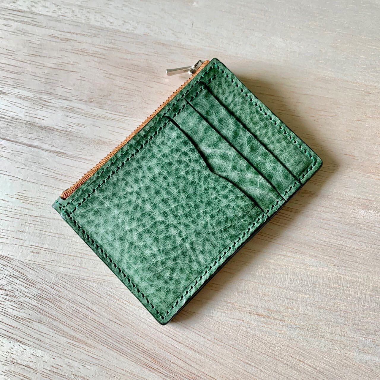 ミニマルジップウォレット/ 色:グリーン/オイルワックス