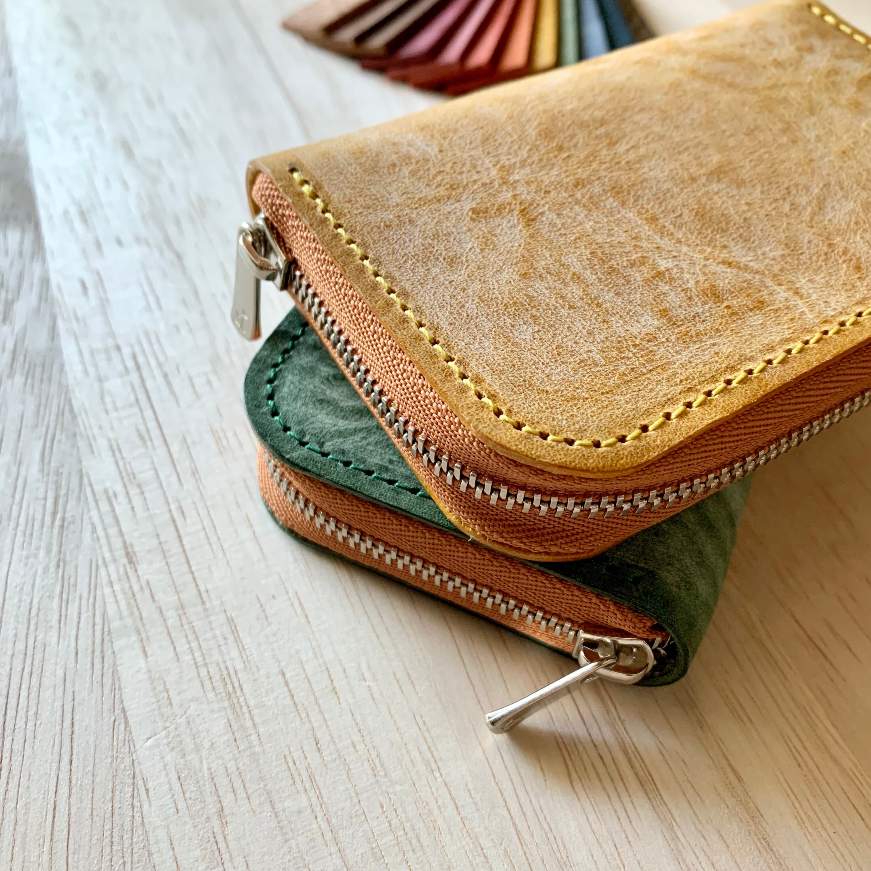 大人可愛いデザインが魅力のフルラウンドファスナー財布。シンプルでありながらも、上品でスタイリッシュな印象を与えてくれます。素材は高級感漂うオイルワックスを使用し、しっとりとした風合いと耐久性を兼ね備えています。カラーバリエーションも豊富で、お好みに合わせてお選びいただけます。 この財布は、複数のカードポケットやお札入れ、小銭入れなど、収納力も抜群です。バッグの中での取り出しやすさも考慮して設計されており、使い勝手も良いです。さらに、ファスナーの開閉がスムーズで、お金やカードの紛失の心配もありません。